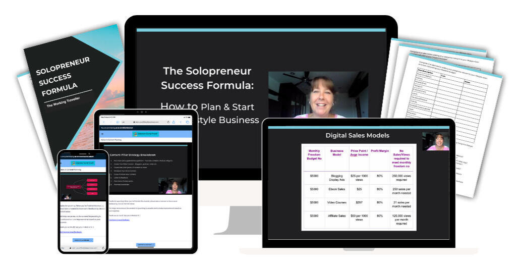 With the 50+ Nomadic Solopreneur Success Formula you’ll learn how to choose the perfect niche and business model suited to your personality, build your audience, and even brainstorm potential profitable products so you can be up and running by the end of the weekend.